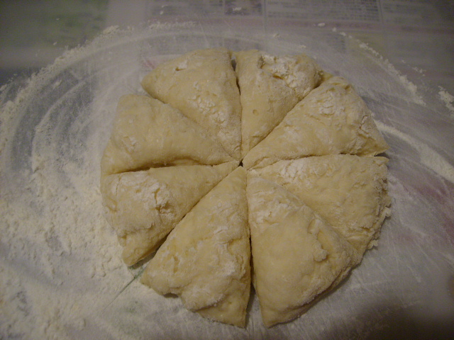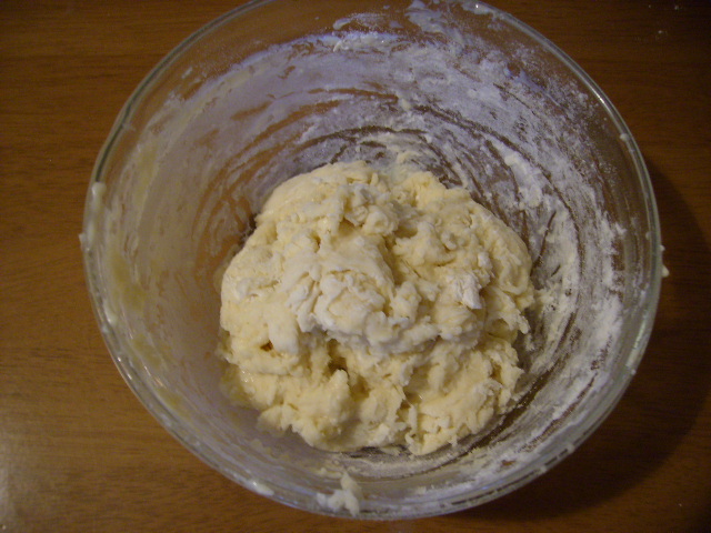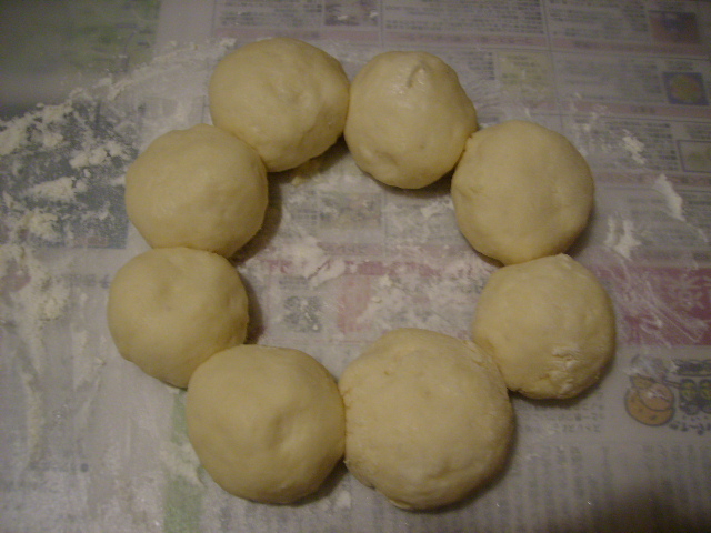 まな板に、強力粉で打ち粉をして生地を載せ、