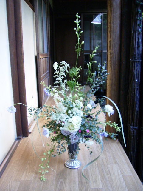 お花はバラを中心にスカビオサ、その他数種類の小花。