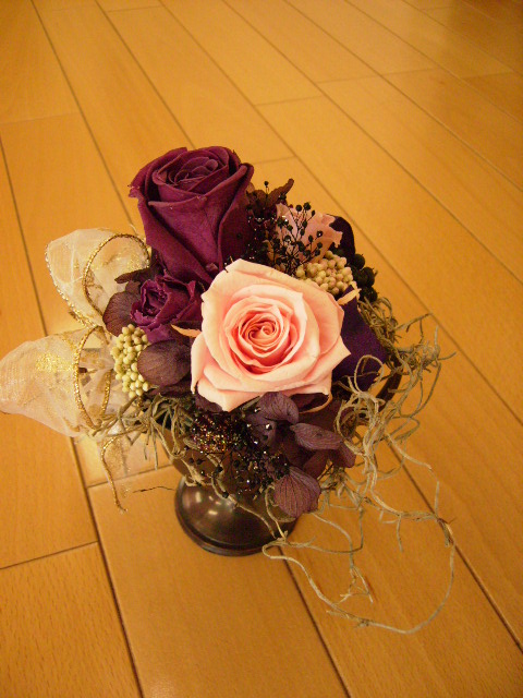 今日はプリザーブドフラワーを使ったアレンジメント。