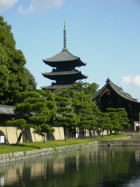 五重塔は京都のシンボルで、毎月21日、弘法大師の命日に催される縁日「弘法市」は10万人以上の人出で賑わう。講堂内の21体の仏像「立体曼荼羅」や、国宝の金堂、大師堂など多数の見どころを抱える。世界遺産。