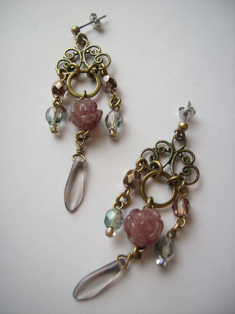 選んだ薔薇モチーフの石はスモーキークオーツとモスコバイト。