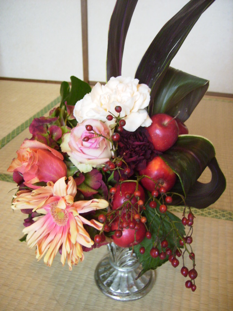 今回のアレンジメントは生徒さんの子供さんが