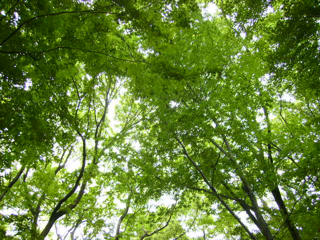 新緑の時期、黄緑色の新芽がさわやかな森です。